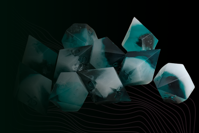 Swirling with cosmic energy, these dice capture the beauty of a sky untouched by mortal hands.