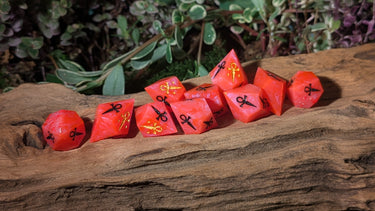 Bathed in neon and pearlescent red, Auspex Activated glows like a vision that refuses to be ignored. These dice look lit from within, swirling with iridescent fire that shifts when you move them, as though each facet captures a moment of sight sharper than instinct. Their brightness feels uncanny, the kind of light that comes not from the sun but from revelation itself.